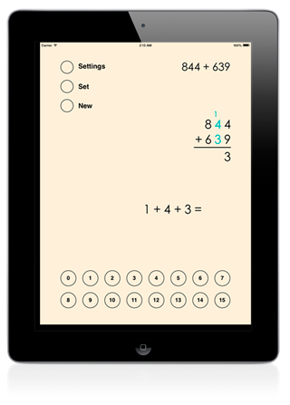 “If your child is familiar with the traditional algorithm they will likely be able to improve their mastery of the procedure using this application. With the ‘show current operation’ option turned on, they are constantly reminded of the next step, which can lead to efficient practice of the procedure. Then by turning off the current operation your child is able to practice remembering the steps on his/her own. Because no wrong entries are allowed the app provides a passive form of positive reinforcement and your child will likely improve in both confidence and competence with respect to the procedure. However, to support learning and understanding in mathematics you need to take an active role in assessing understanding and challenging your child to explain their thinking.”
