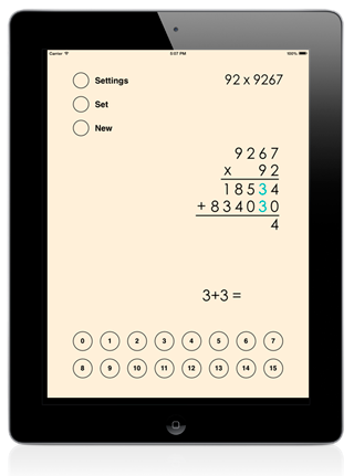 After you solve the operation for each column the correct answer will fly to the right place. If the user presses the wrong button the answer will appear above the keyboard but it will not move.