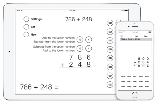 In the Opposite-Change Addition app the user can keep adding a number to one addend and subtract the same number from the other addend until the addition problem can be solved easily.