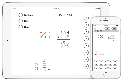 This math app is about a multiplication technique introduced by Shri Bharti Krishna Tirthaji in his book “Vedic Mathematics”, published in 1965. Tirthaji claimed to have found the mathematical content for his book in ancient sacred Hindu texts.